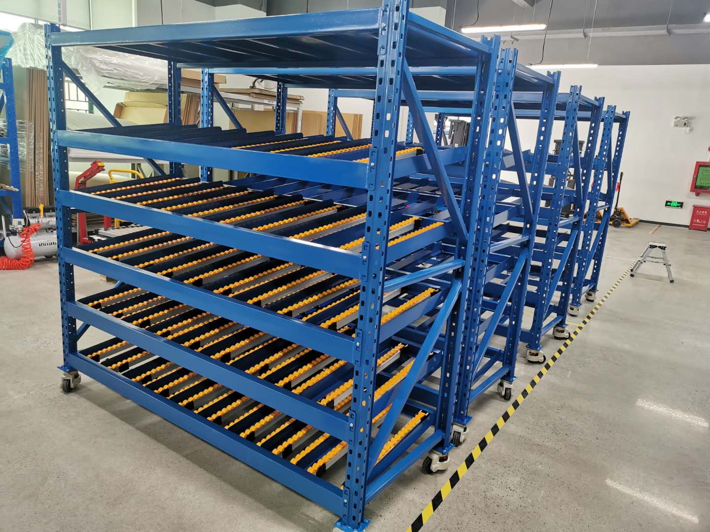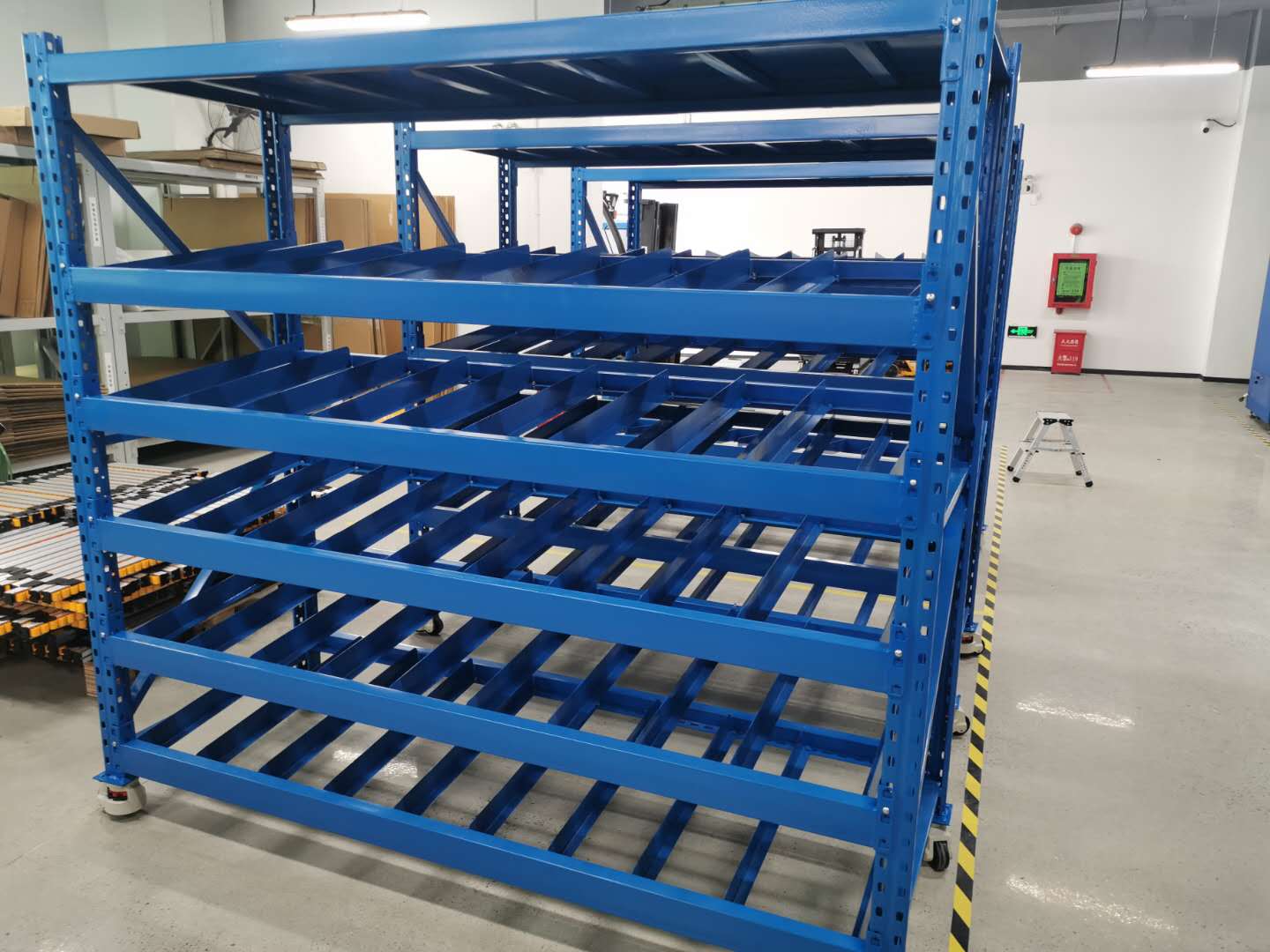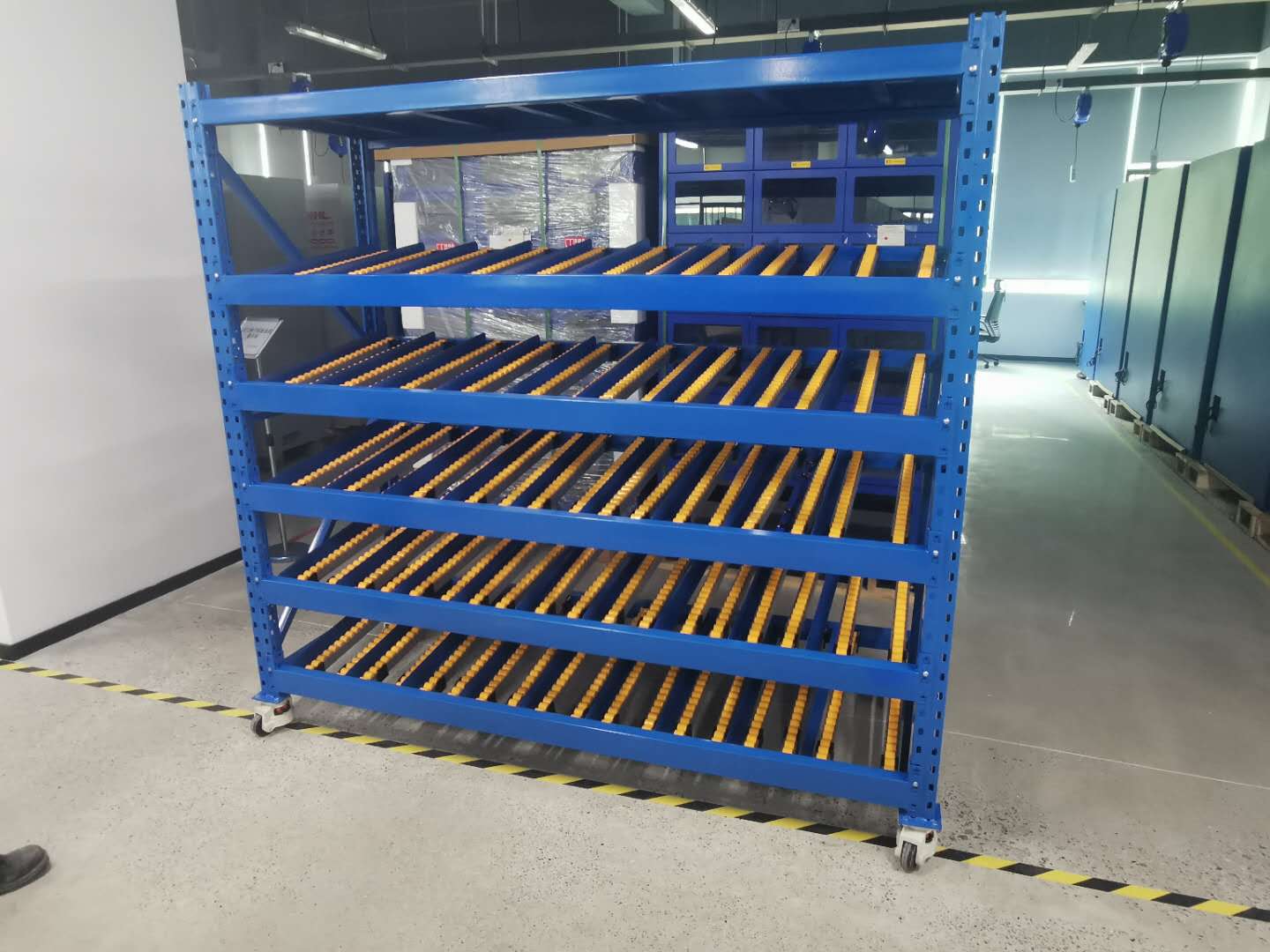 很多客戶不太明白流利貨架是有什么用處?是將貨物置于滾輪上,利用一邊通道存貨,另一邊通道取貨,料架朝出貨方向向下傾斜,貨物在中立作用下向下滑動,可實現先進先出,并可實現一次補貨,多次揀貨,流利架存儲效率高,適合大量貨物的短期存放和揀選,流利架廣泛應用于配送中心,裝配車間及出貨頻率較高的倉庫,可以實現貨物先進先出,一次補貨,多次揀貨,可加腳輪便于線旁作業.