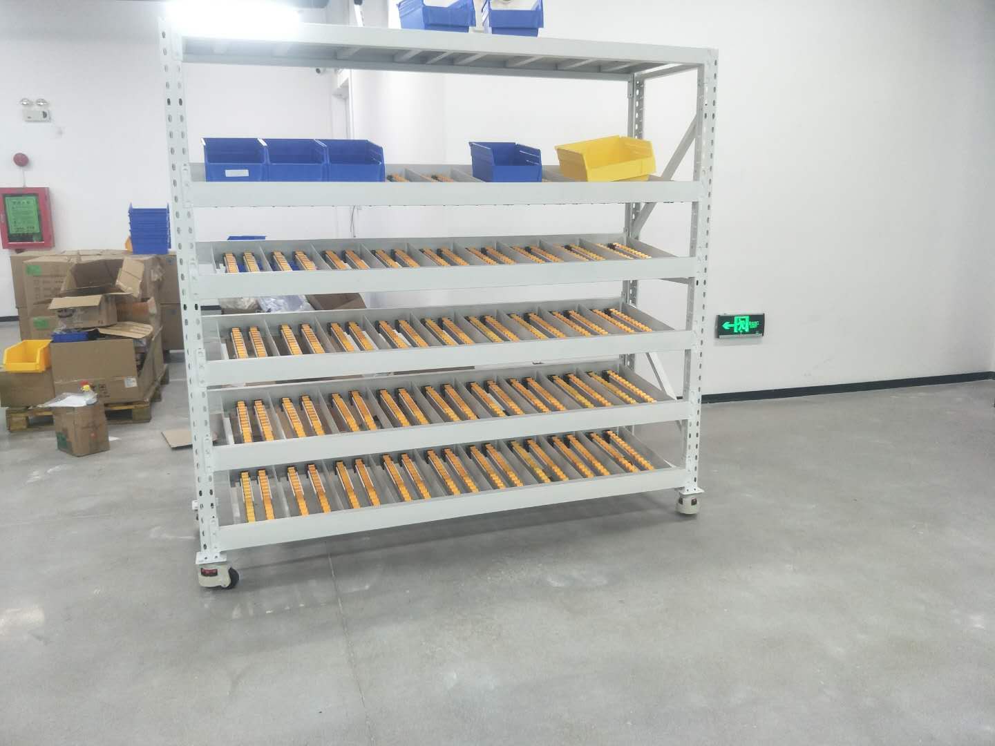 流利式貨架廣泛應用于制造業,商業,配送中心,裝配車間以及出貨頻率較高的倉庫流利式貨架,采用滾輪鋁合金,鈑金等流利條,利用臺架自重實現先進先出,存儲方便,適用于裝配線兩側配送中心等場所.